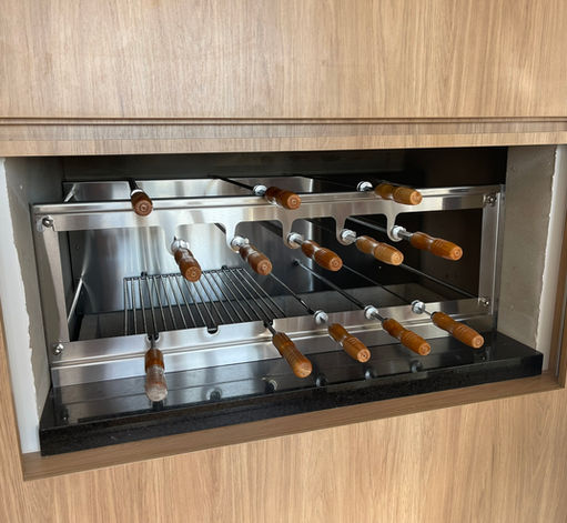 Churrasqueiras com espetos suspensos